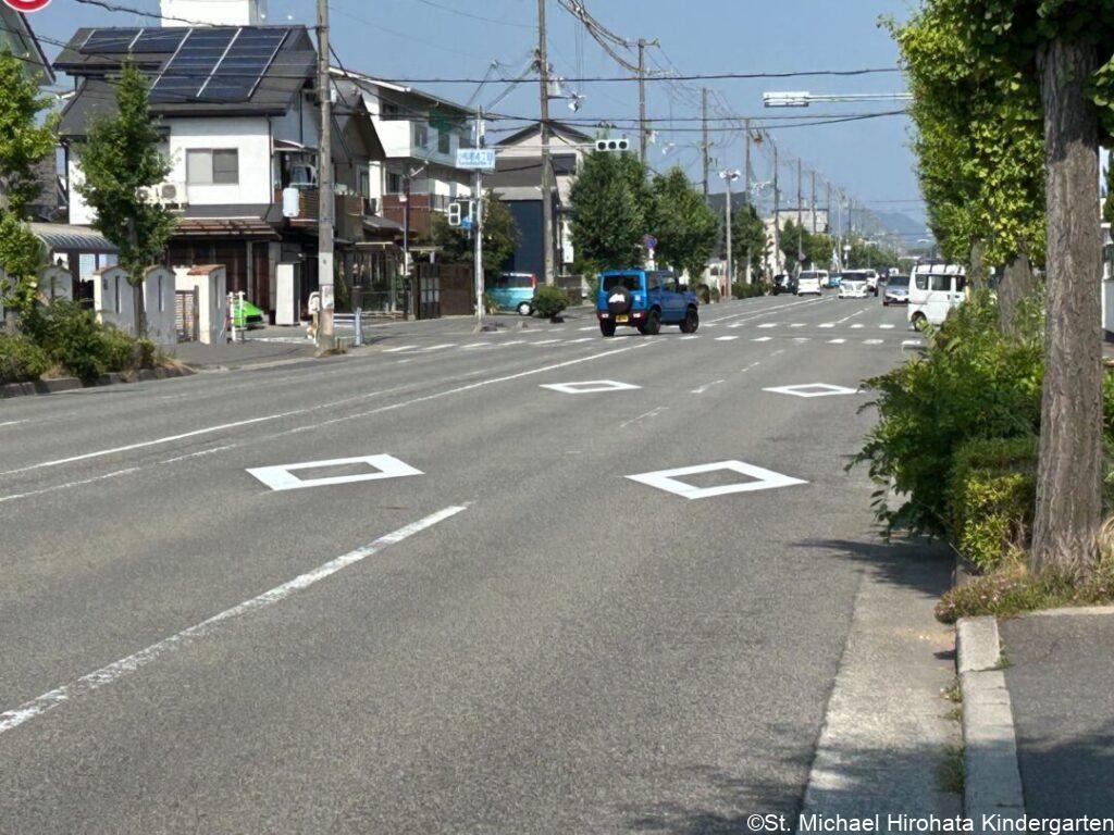 【要望事項1】の当該横断歩道の白線類、停止線が白色スプレーにて応急補修されました。